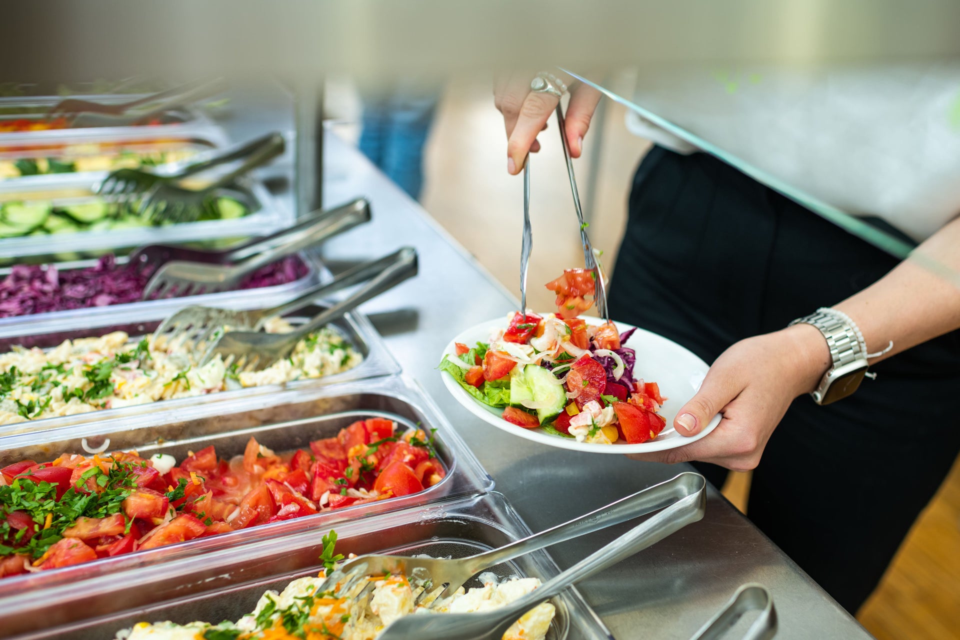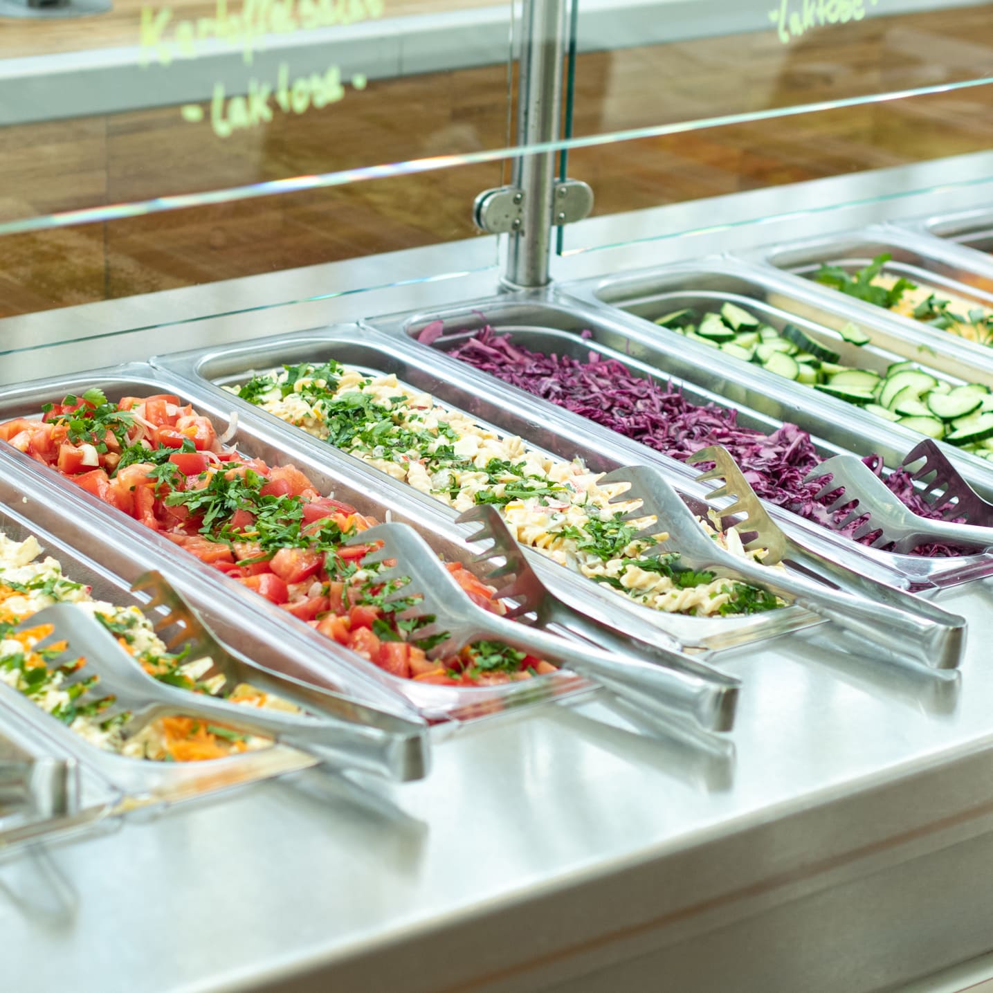 Am Buffet entscheiden die Schülerinnen und Schüler selbst, worauf sie Appetit haben: Ob knackige Salate, zusätzliche Beilagen zum Hauptgericht, ein Snack auf die Hand oder eine exotische Köstlichkeit vom Wok? So wird Mensa zum coolen „Place to be“