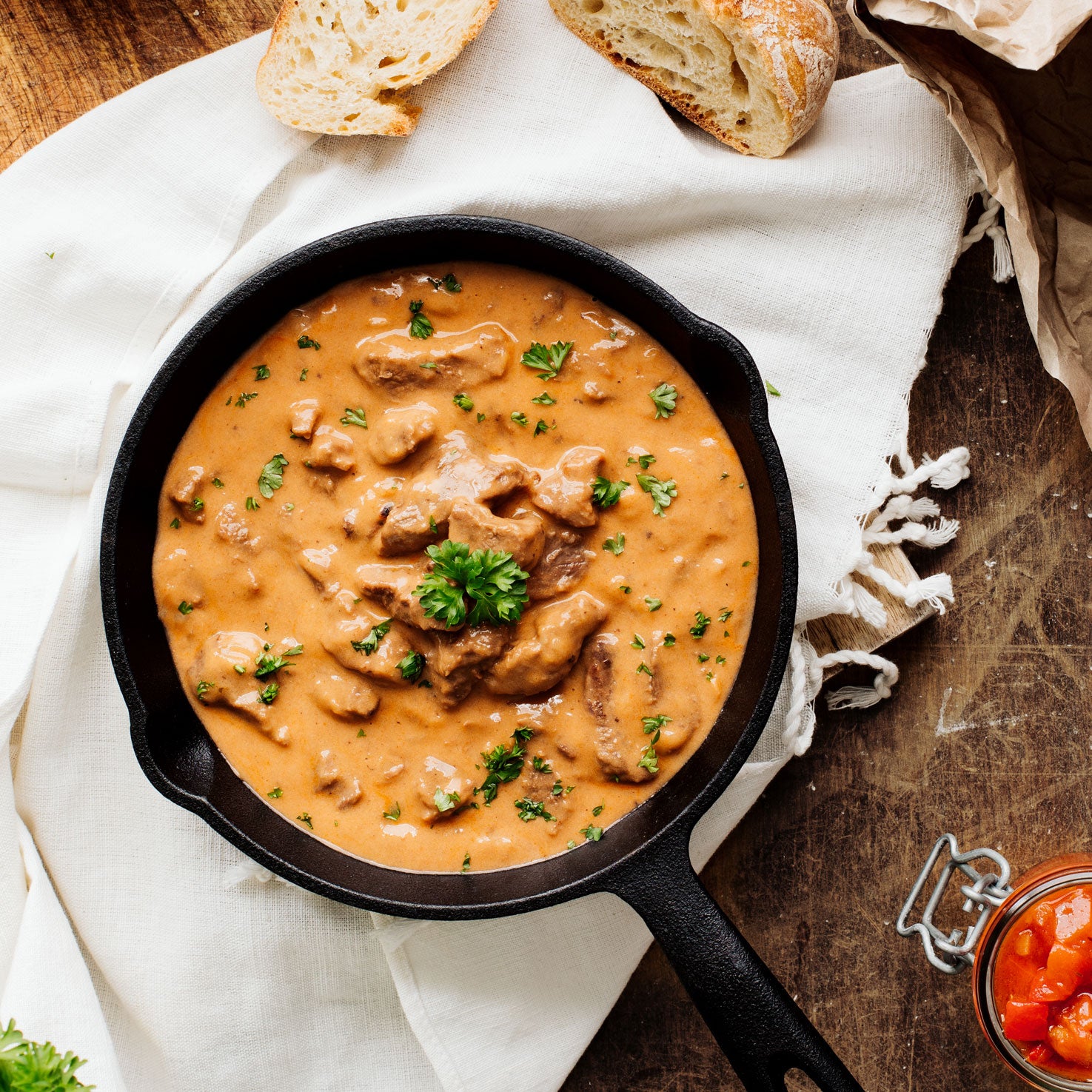 Geschnetzeltes vom Weiderind in feiner Rahmsauce mit Nudeln
